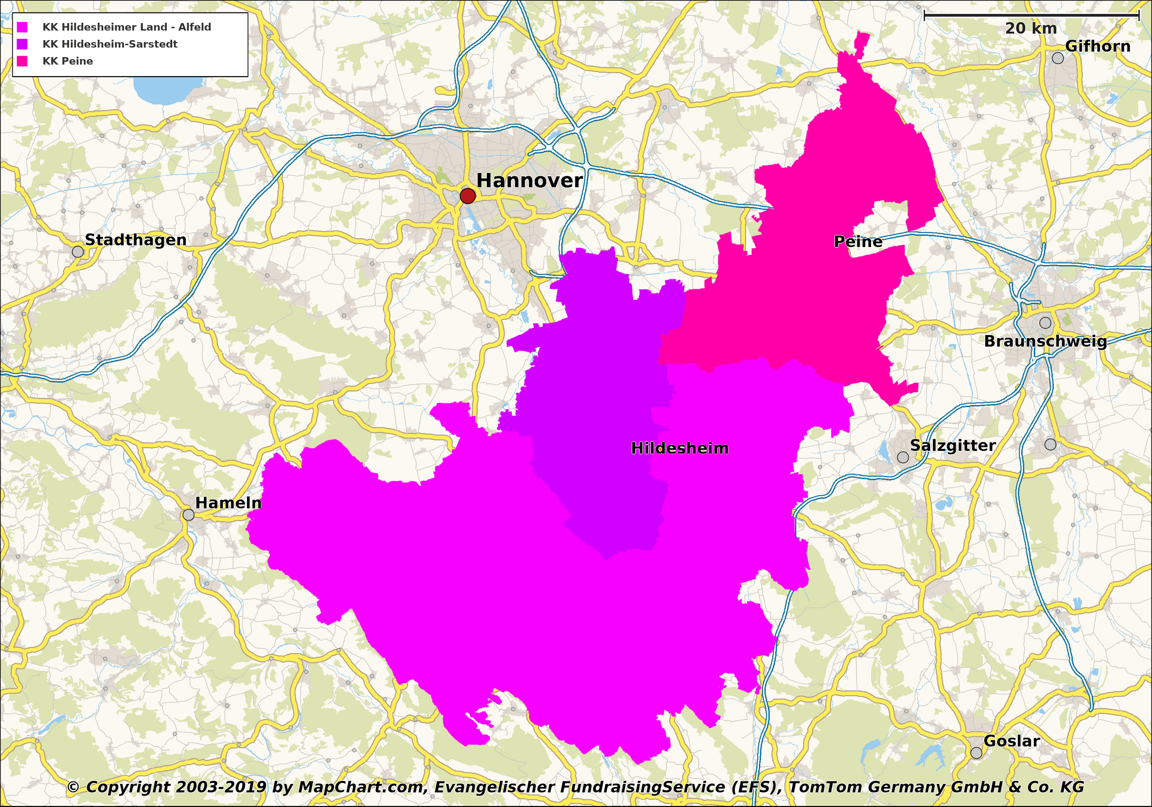 Die Ev.-luth. Kirchenkreise Peine, Hildesheimer Land-Alfeld und Hildesheim-Sarstedt bilden den Ev.-luth Kirchenkreisverband Hildesheim, um wichtige Aufgaben gemeinsam wahrzunehmen. Hierzu zählen: